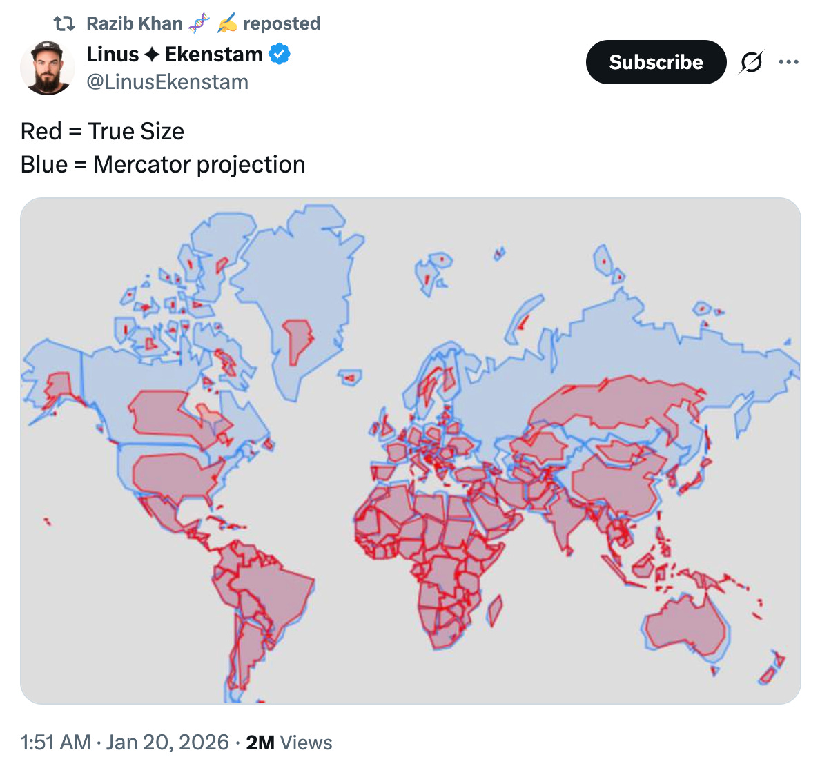 Krugman: Yeah, I wonder whether these guys have actually thought it through. I mean, as far as I can make out, the commercial potential in Greenland is de minimis in reality, but who knows? But a lot of people, even on the left, are sure that there’s some fundamental corporate drive behind Greenland. And I actually think that it’s mostly that Greenland looks really big in a Mercator projection.